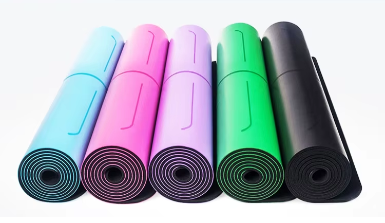 Printed position guide Line Eco friendly Great Cushioning black rubber PU leather yoga mat with logo
