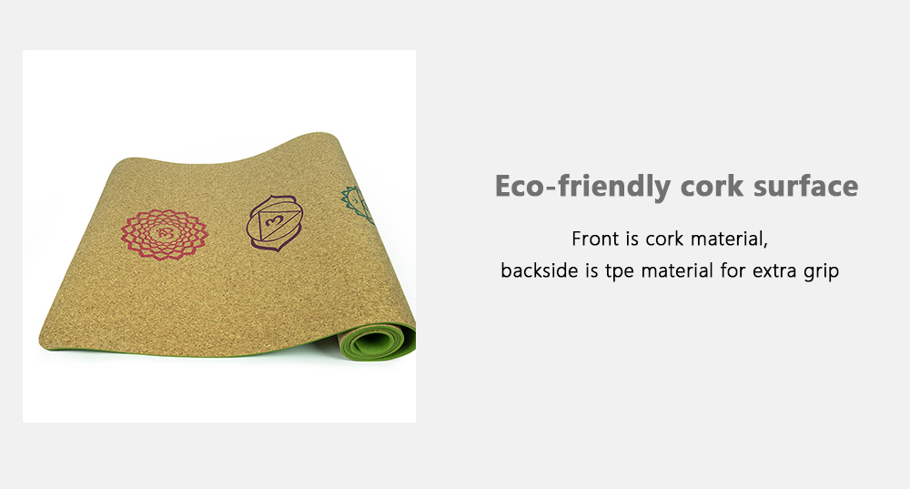 Cork + TPE ,Cork comes from Portugal, FSC certificate. Natural, primitive, pure ecological cork, lightest material TPE Soft but strong, to be anti-tearing Wet and dry both can be anti-slip